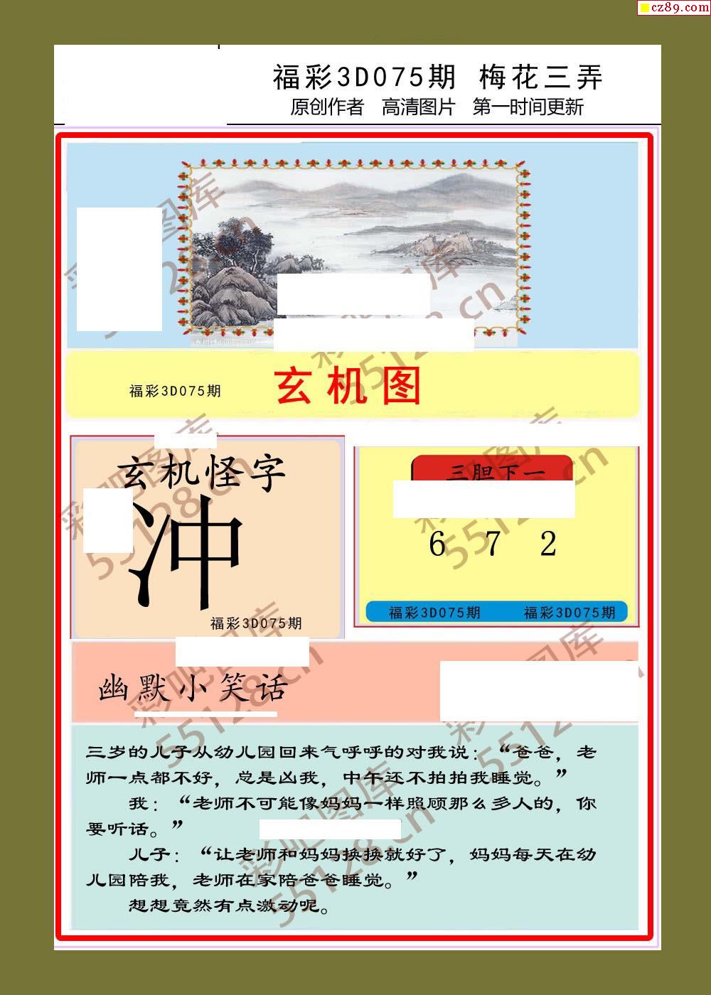 > 梅花三弄26年075期福彩3d图谜