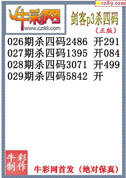> 剑客杀码029期体彩P3图谜(原创)